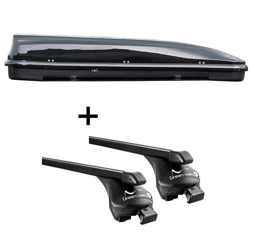 Skibox schwarz VDP JUXT600 lit + Relingträger kompatibel mit für Seat Alhambra III ab 2010 bis offen