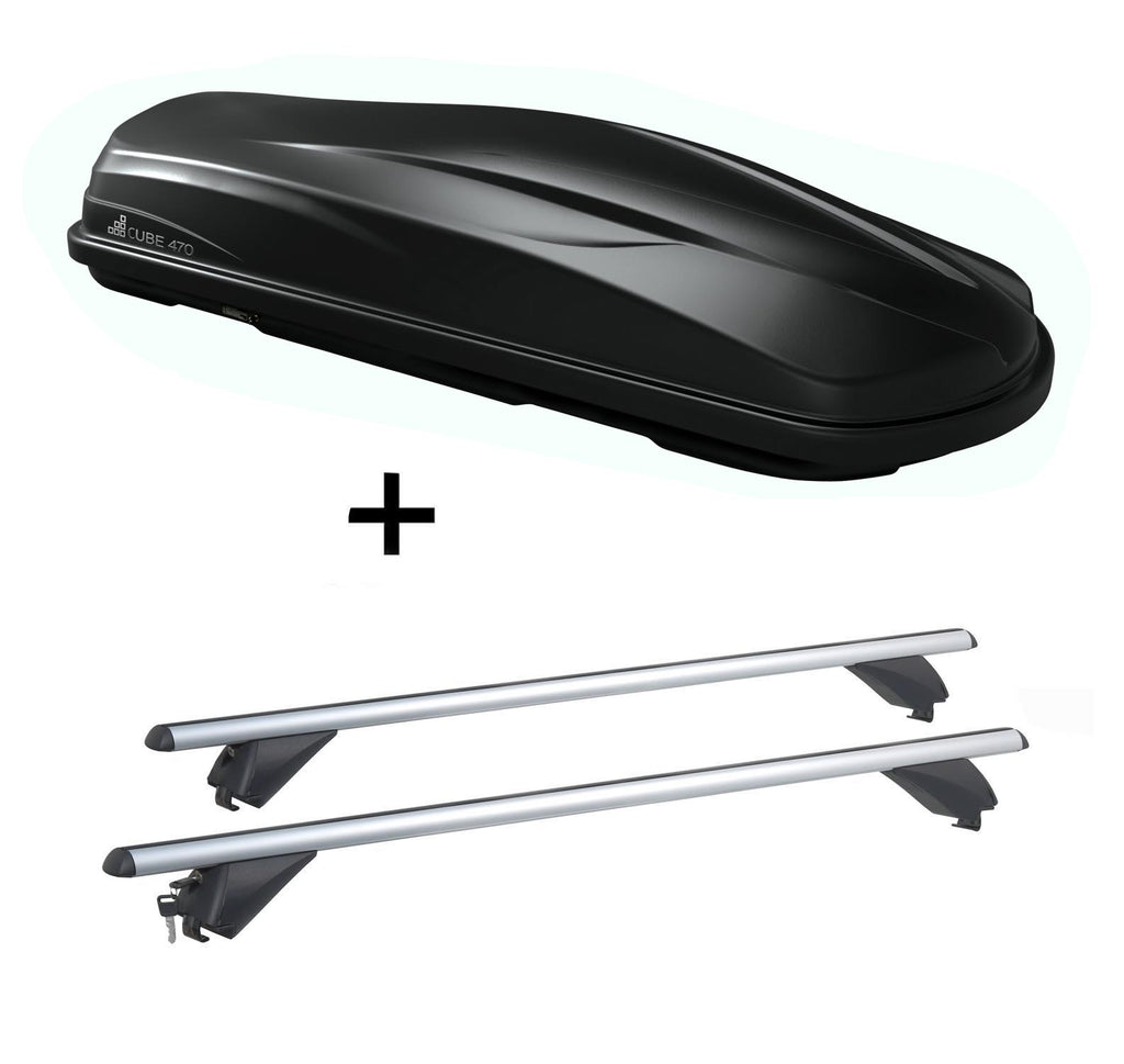 Dachbox/Gepäckbox CUBE470 + Alu Dachträger RB003 kompatibel mit für Audi A4 SW (B9) (5Türer) ab 2015
