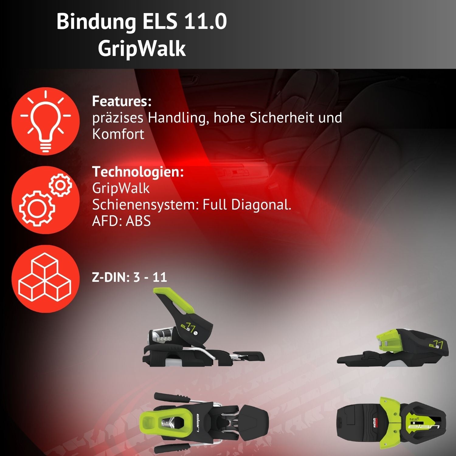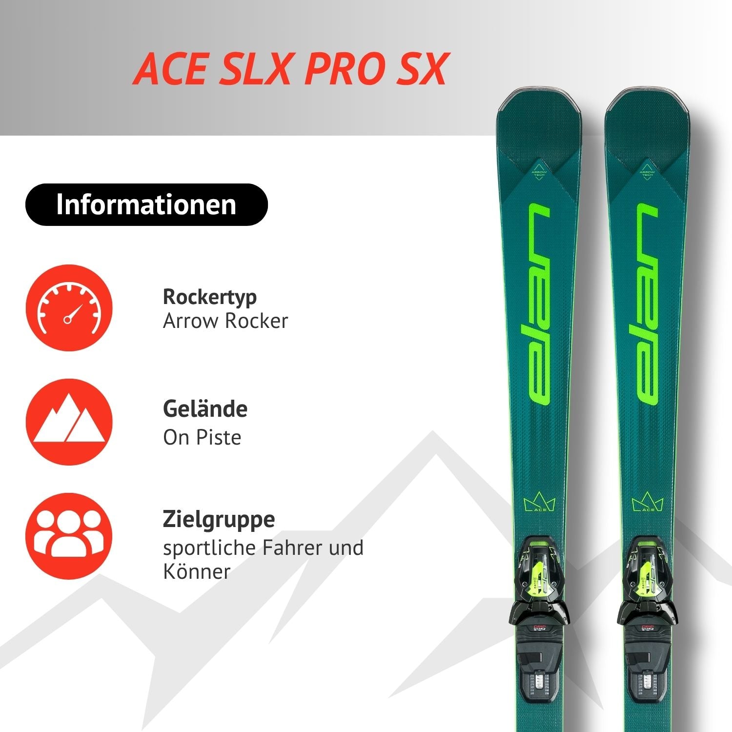 Ski Alpinski Carvingski - Elan Ace SLX Pro SX - Arrow Rocker - inkl. Bindung ELS11.0 GW Z3-11 - für präparierte Piste - geeignet für sportliche Fahrer und Könner