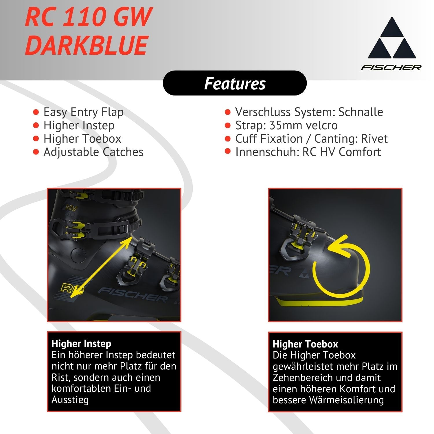 Der RC ONE 110 Skischuh von Fischer zeichnet sich durch Komfort und Sportlichkeit aus. Dank des leichten Gewichts, dem einfachen Einstieg und anatomisch geformten Zehenbereich bietet der Skischuh besten Komfort.