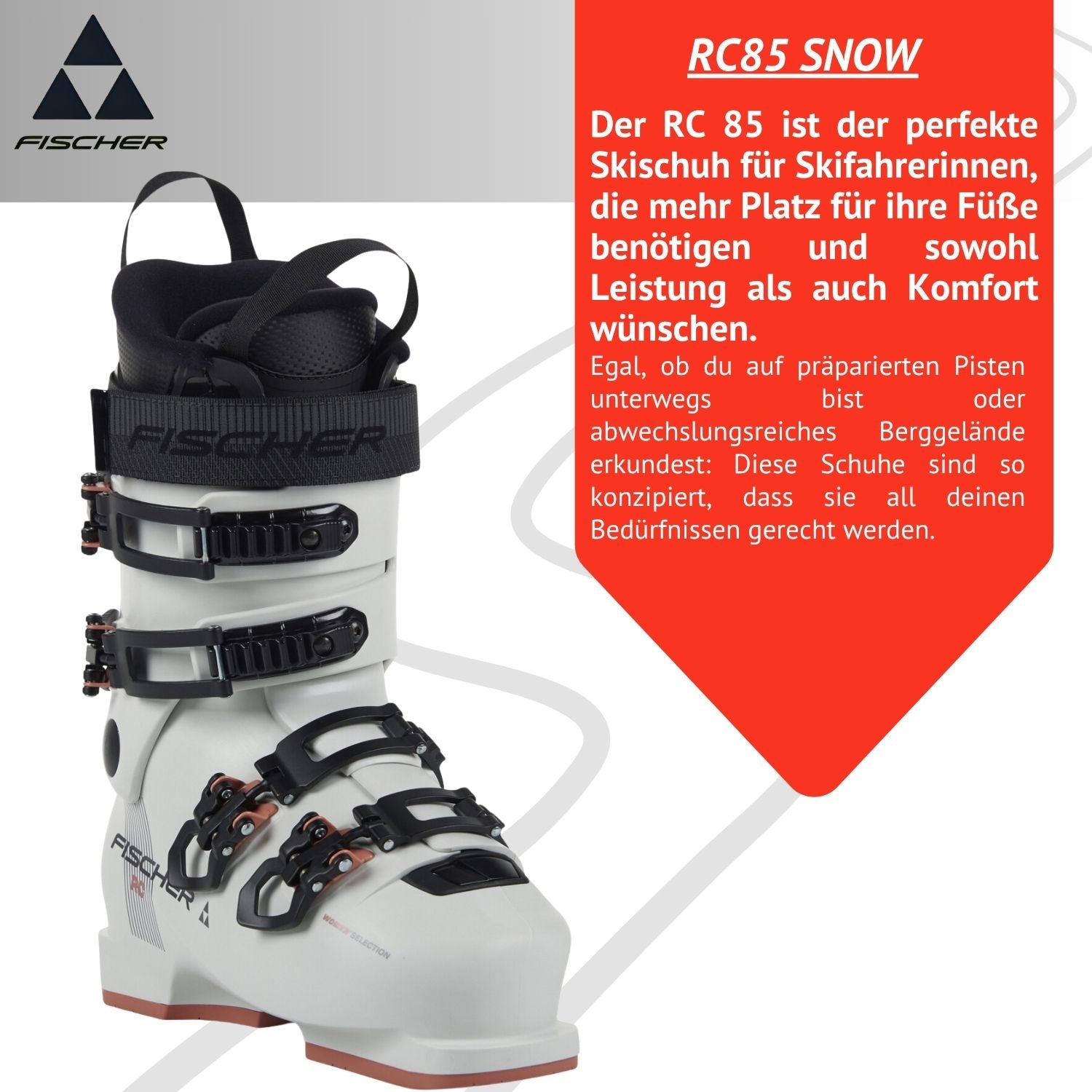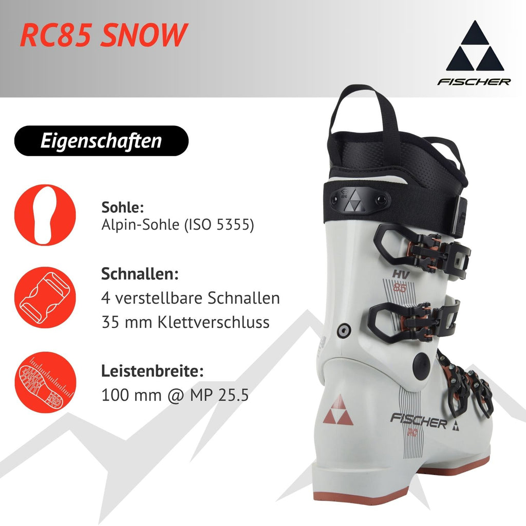 Der RC 85 ist der perfekte Skischuh für Skifahrerinnen, welche mehr Platz für ihre Füße benötigen und sowohl Leistung als auch Komfort wünschen. Egal, ob du auf präparierten Pisten unterwegs bist oder abwechslungsreiches Berggelände erkundest: Diese Schuhe sind so konzipiert, dass sie all deinen Bedürfnissen gerecht werden.