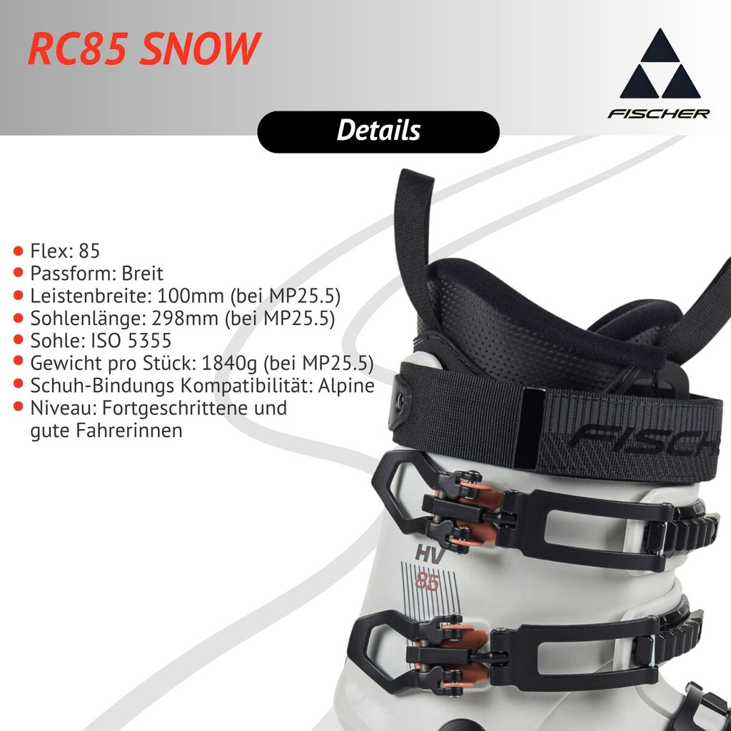 Damen Skischuhe Skistiefel - Fischer RC 85 - Flex 85 - Alpinskischuhe Alpin-Skistiefel Alpinstiefel - breite Passform Komfort-Innenschuh - präparierte Piste - für fortgeschrittene bis gute Fahrerinnen