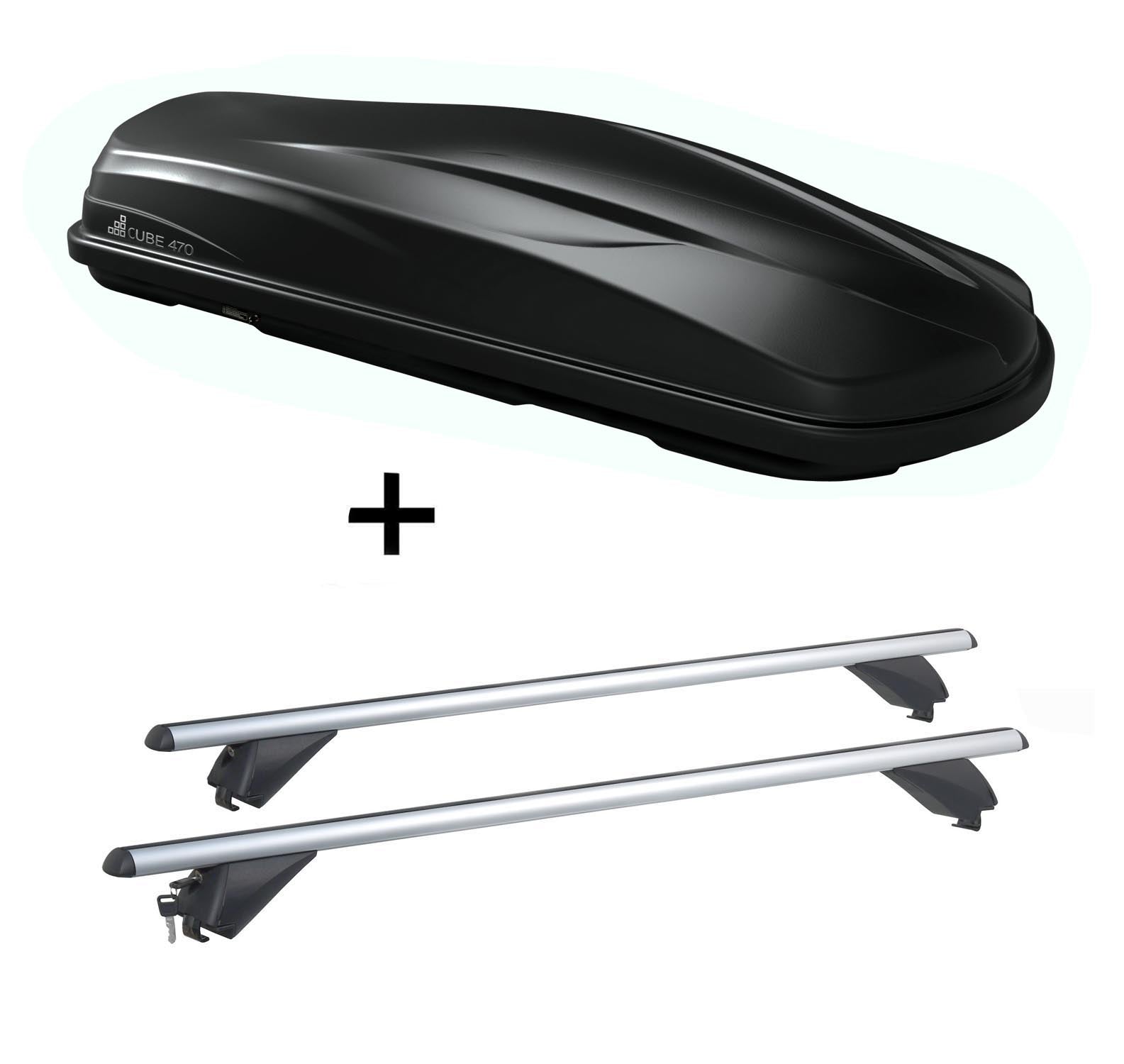 Dachbox/Gepäckbox CUBE470 + Alu Dachträger RB003 kompatibel mit für Seat Alhambra III (5Türer) ab 2010