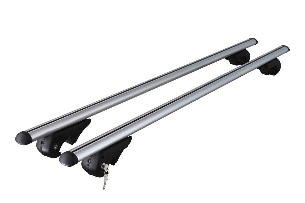 Dachträger Rio 120 + Skiträger / Snowboardträger / Skihalter Alu 4 Paar Ski kompatibel mit für VW Tiguan 07-16