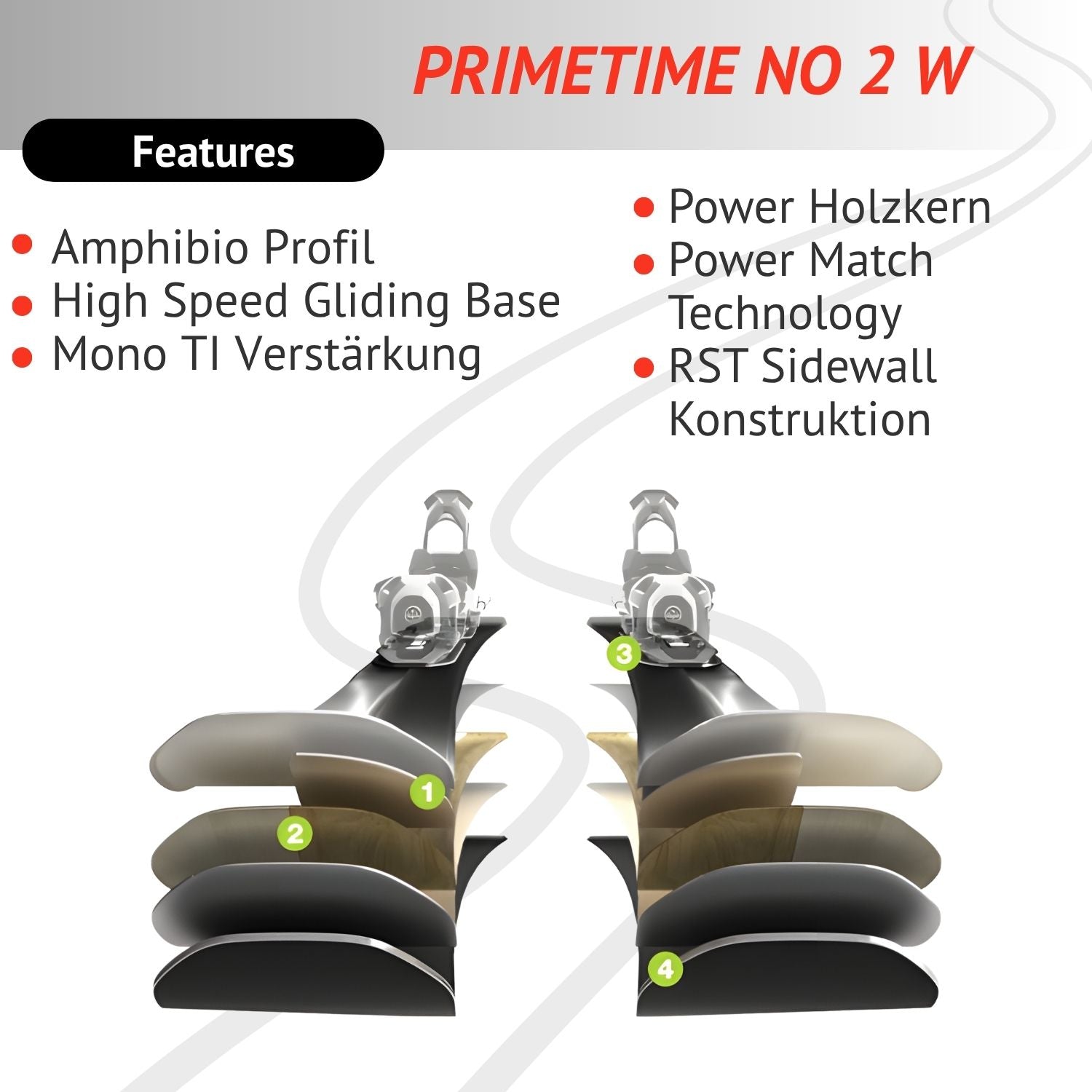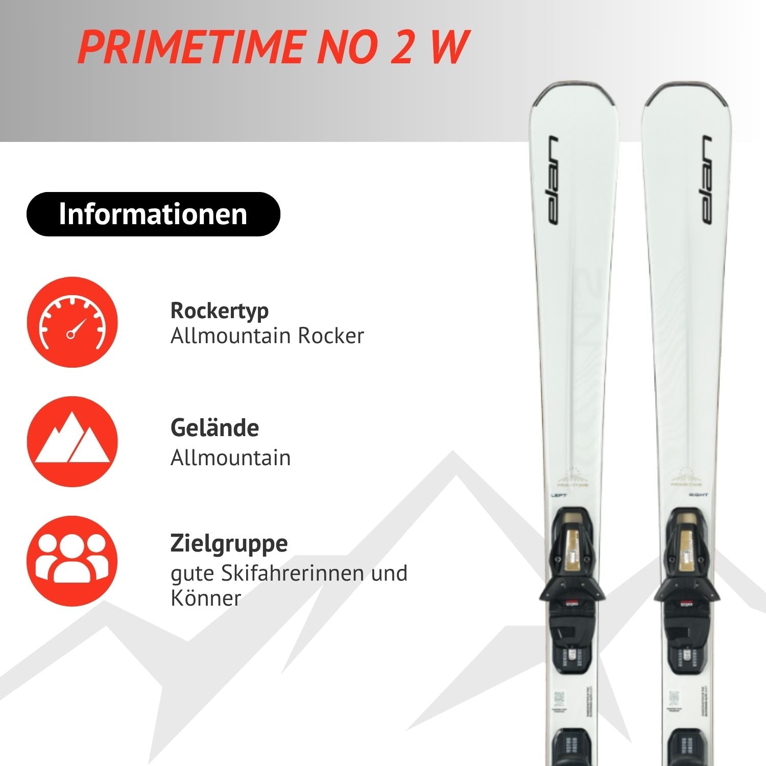 Genieße den Skitag mit dem neuen Primetime No.2 W! Er ist einfach zu fahren, fehlerverzeihend und trotzdem äußerst agil und sehr drehfreudig. Der perfekte Ski für alle Fahrerinnen, welche ihr Level weiter steigern wollen.