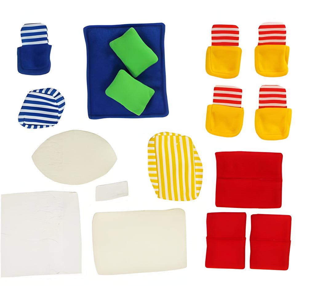 Schlafzimmer: 1 Husse für den Stuhl, 1 Betttuch, 2 Kopfkissen, 1 Deck für den Nachttisch, 1 Teppich (oval)