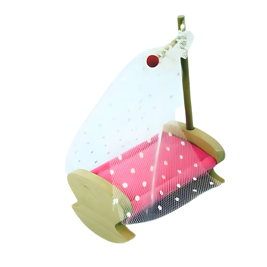 Die Babywiege paßt bestens zu unserem Möbelset für das Puppenhaus FREDA (s. unten).