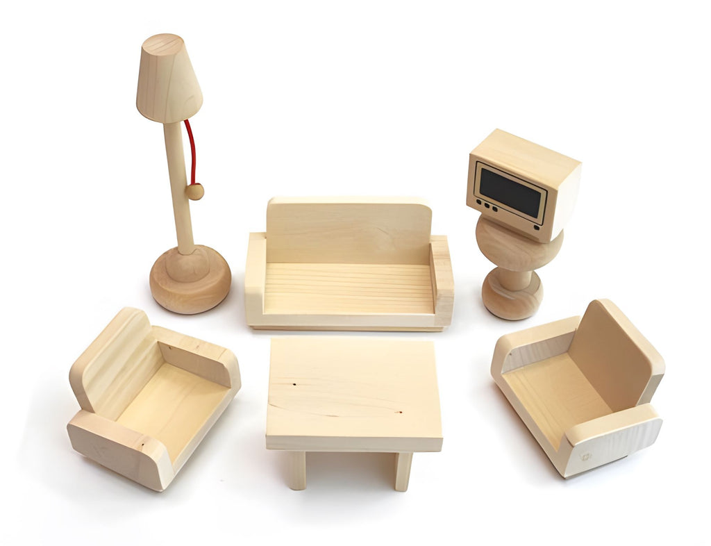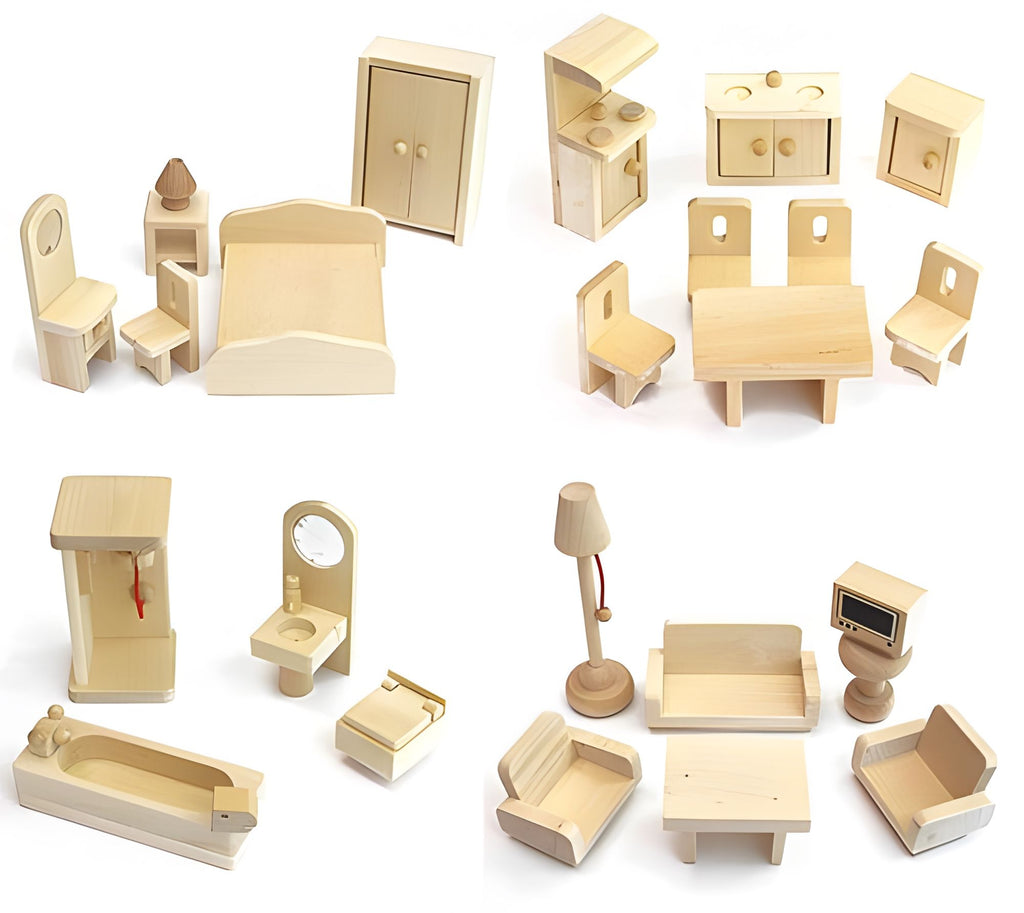 Freda Puppenhaus Puppenmöbel aus Holz - Puppenvilla Puppenfamilie
