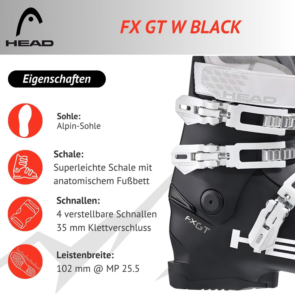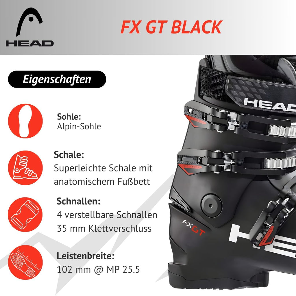Head FX GT Skischuhe Damen Herren - All-Mountain Skistiefel Flex 60-70 (Herren) Flex 50 (Damen) - breite Passform & Komfort-Innenschuh - für fortgeschrittene bis gute Fahrer