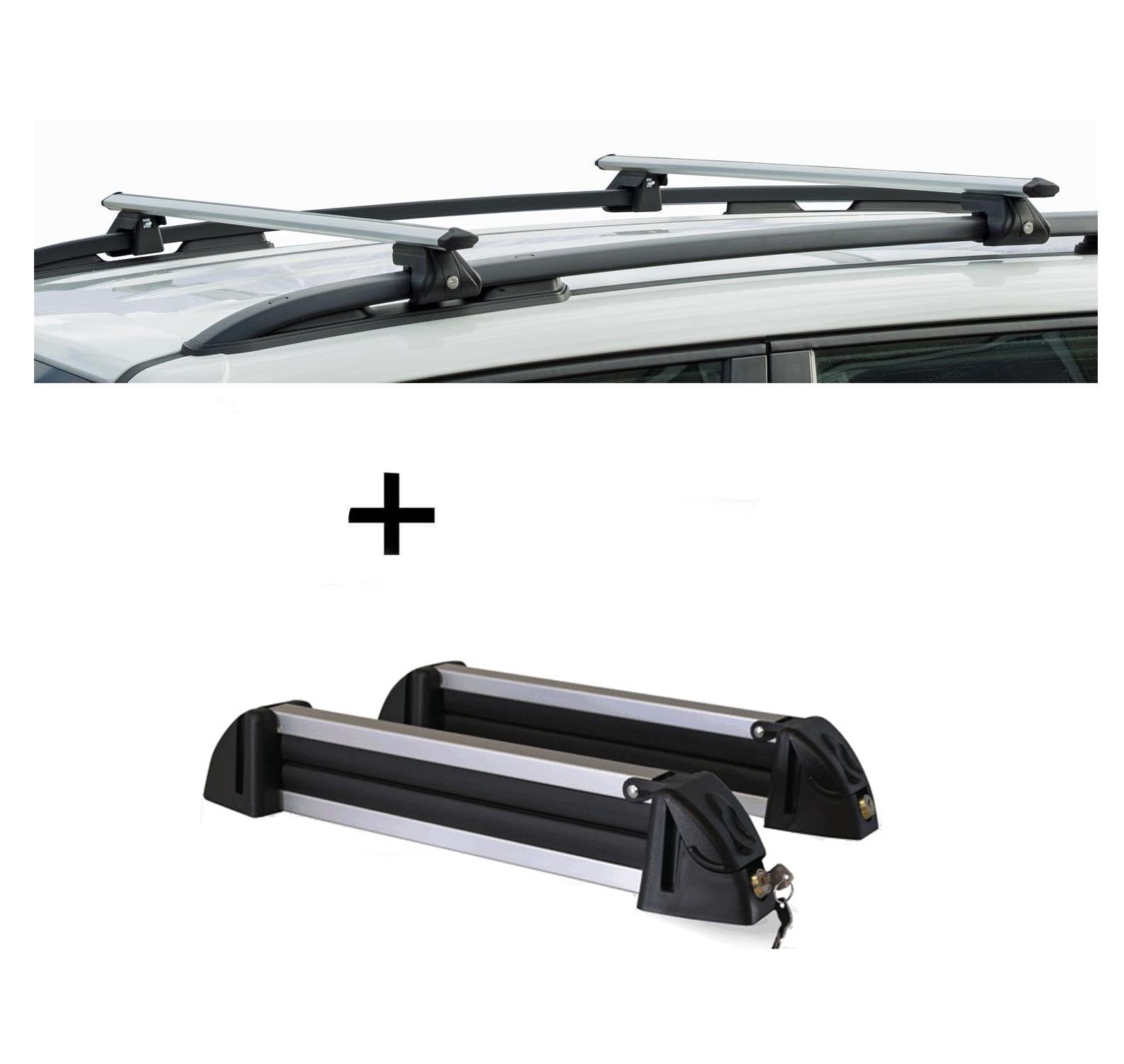 Relingträger CRV135 + Skiträger/Snowboardträger/Skihalter Alu 4 Paar kompatibel mit Skoda Roomster Scout ab 09