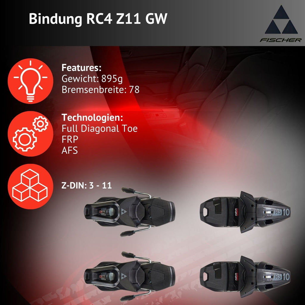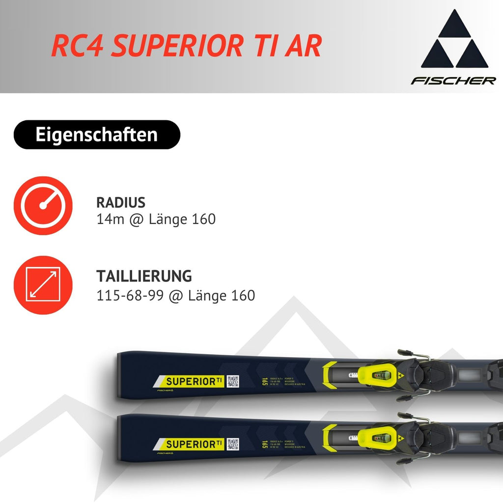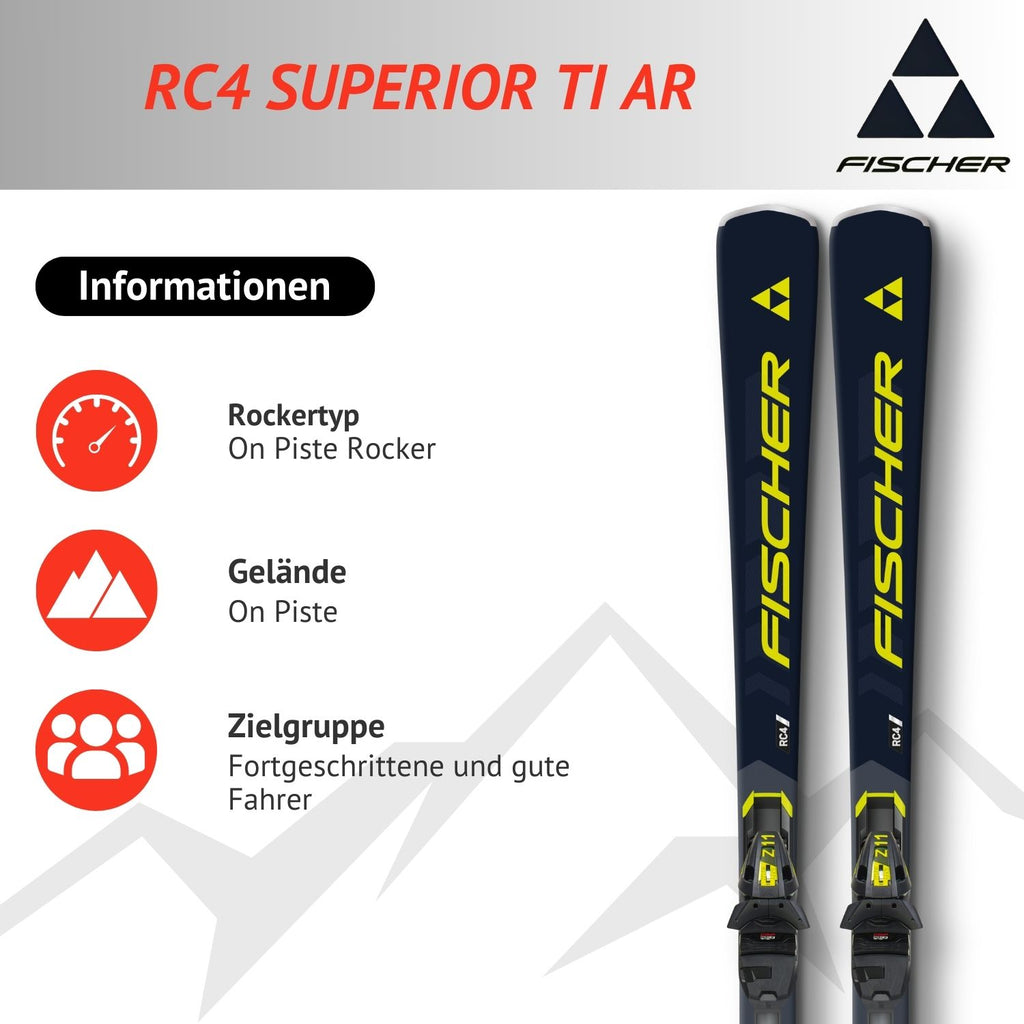 Ski Alpinski Carvingski - Fischer RC4 Superior TI AR - On-Piste-Rocker - inkl. Bindung RC4 Z11 Z3-11 - für fortgeschrittene und gute Fahrer - Carvingski für präparierte Piste