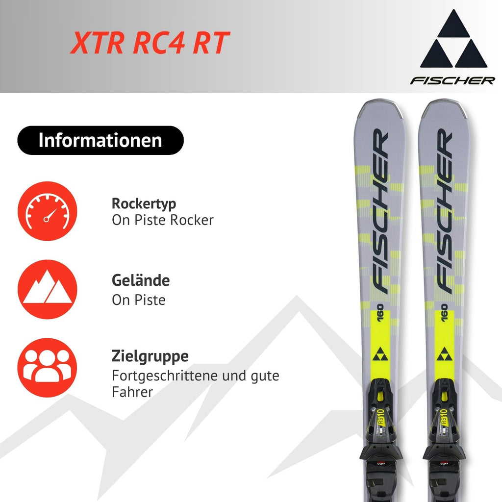 Ski Alpinski Carvingski - Fischer XTR RC4 RT - On-Piste Rocker - inkl. Bindung RS10 PR Z3-10 - für präparierte Piste - geeignet für Fortgeschrittene bis guter Fahrer -