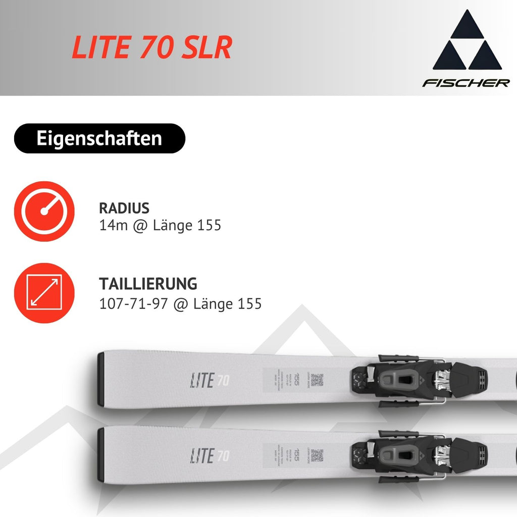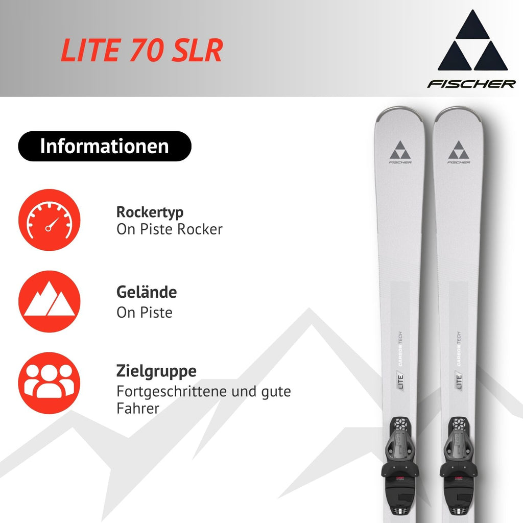 Ski Alpinski Pistenski- Fischer Lite 70 - On-Piste-Rocker - inkl. Bindung RS9 SLR Z2,5-9 - für fortgeschrittene und gute Fahrer - Carvingski für präparierte Piste