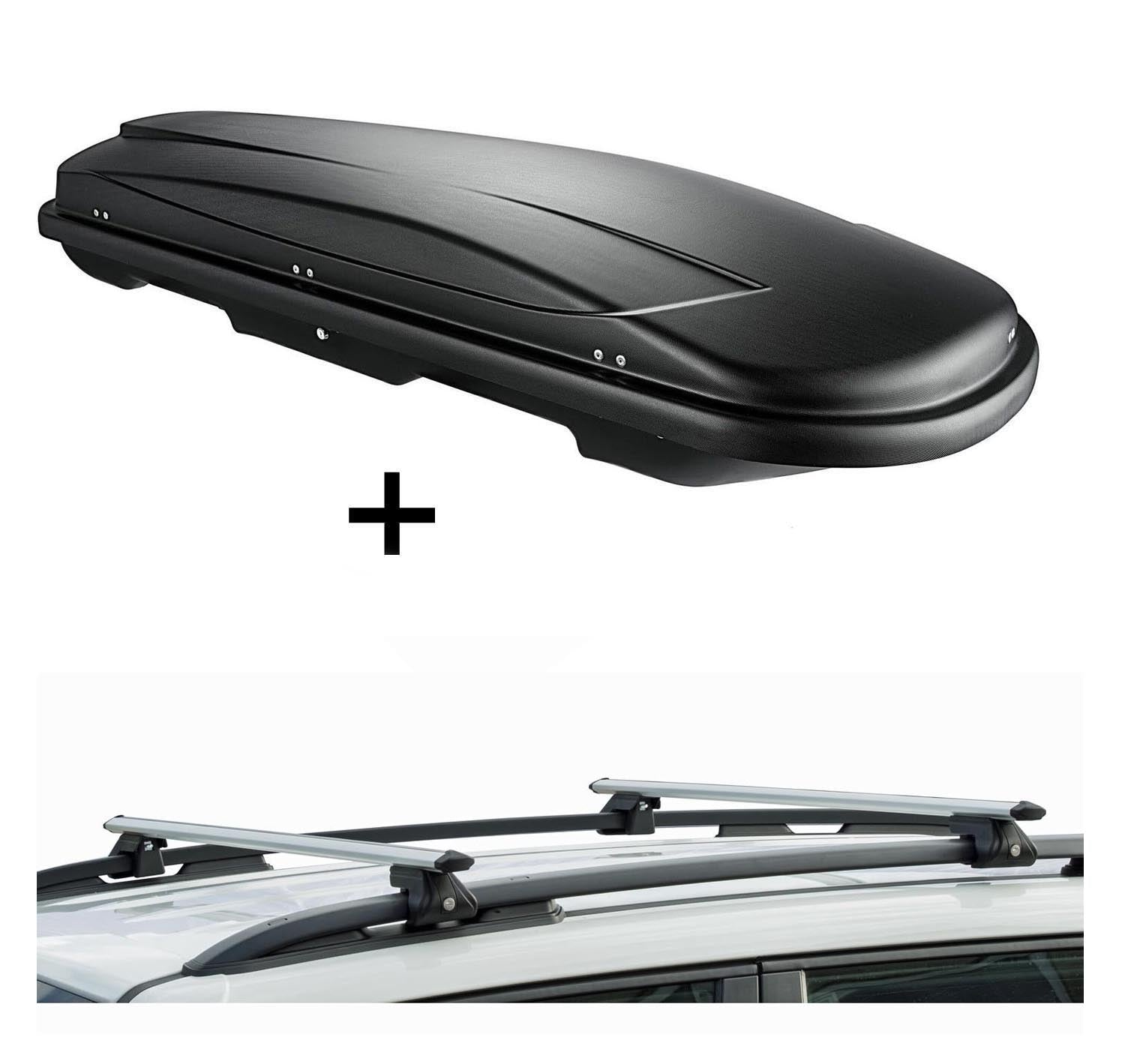 Skibox JUXT400 + Alu Relingträger VDPCRV120 kompatibel mit für Audi A6 Kombi (C4) 94-97