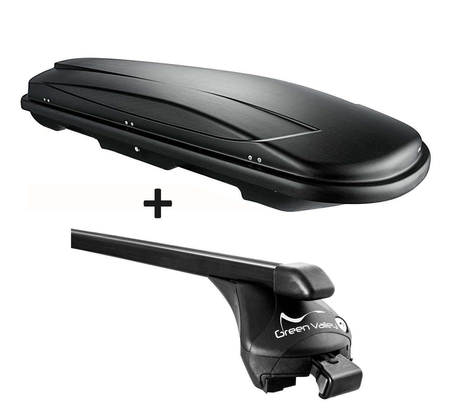 Skibox schwarz VDP JUXT 600 Liter abschließbar + Relingträger Quick für aufliegende Reling im Set für Jaguar F-Pace ab 2016 bis 100kg