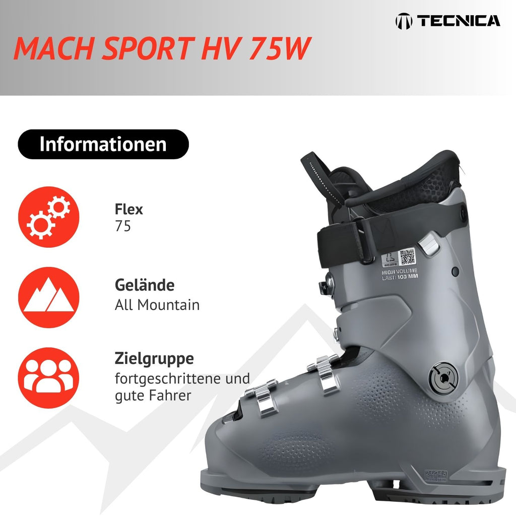 Skischuhe Skistiefel Skiboots Damen - Tecnica Mach Sport HV 75W RT GW - Flex 75 - Skischuh Ski Boots für Fortgeschrittene und gute Fahrer - All Mountain Alpinskischuhe