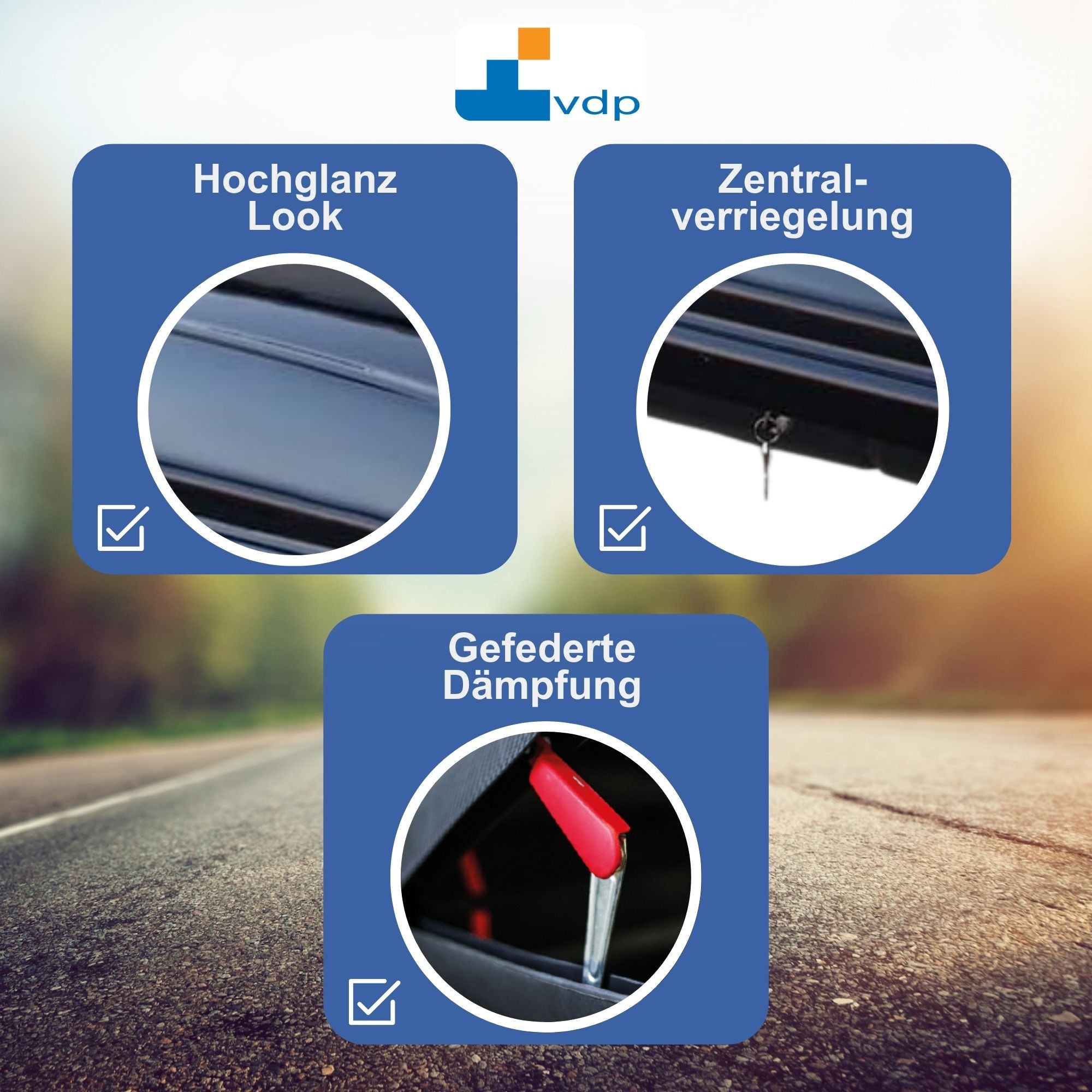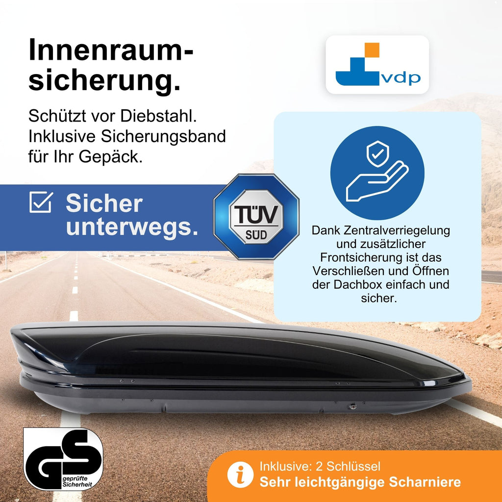 VDP Skibox schwarz MAA460 Liter + Alu-Relingträger Tiger aufliegende Reling kompatibel mit Audi A6 4G Avant ab 2011